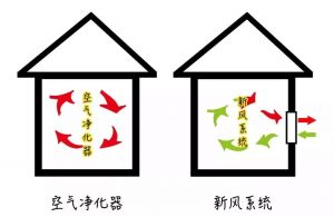 新风和净化器最根本的区别就是,新风能从外面换气,净化器呢,只能在屋里换气,换来换去都是屋子里的空气。