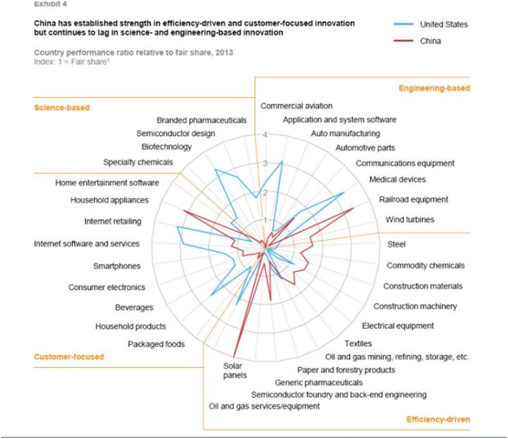 题外话:为了让大家对中国的家电水平有个明确的认识,尽量理智购物,分享一张图,此图出自于世界顶级咨询公司麦肯锡,对中美两国所有重要行业的实力进行了对比,蓝色代表美国,红色代表中国,相应行业对应的点越靠外,说明实力越强,左上角的household appliances是家电行业,我们可以看到中国的实力是美国的三倍还多,考虑到家电行业并不涉及国家战略,不会受太多政治影响,数据基本上是可信的。