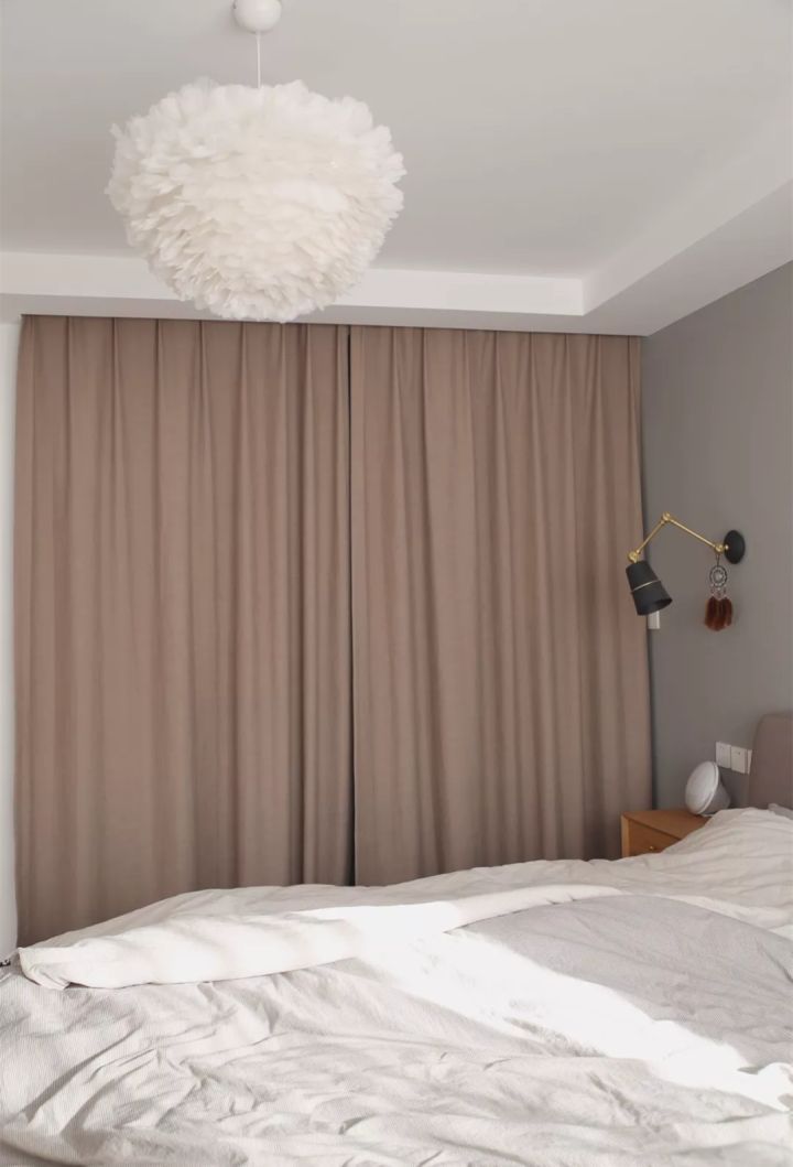 衣帽间最终没有装门,用两片帘子,里面乱了就拉起来,不想拉就敞开,反正卧室除了自己也没人看。