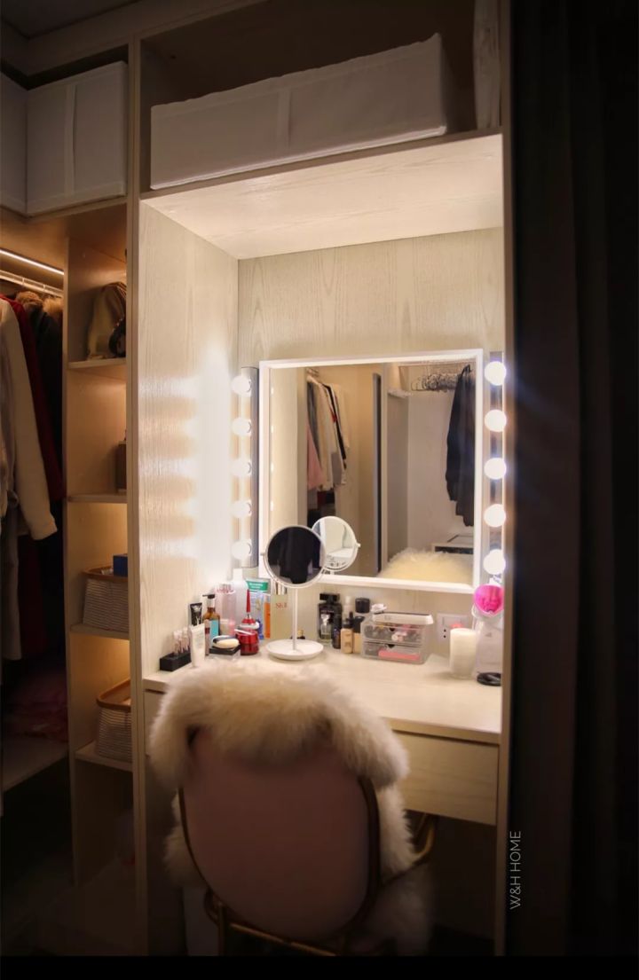 空间再小也要有衣帽间,衣帽间再小也要有梳妆台,而且作为一名合格的戏精,在化妆的时候要想象成坐在夜上海歌厅的后台……