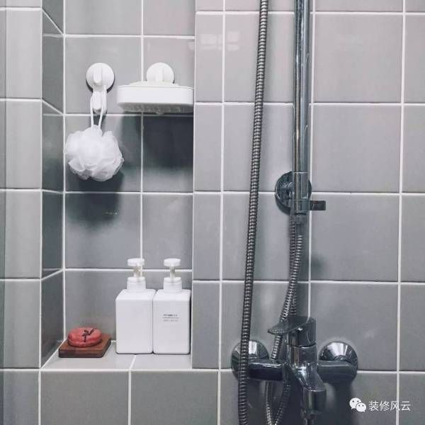 这个小壁龛是特意留出来放这些洗浴用品的,而且还做了一点儿倾斜,这样残留的水可以自己流出来~