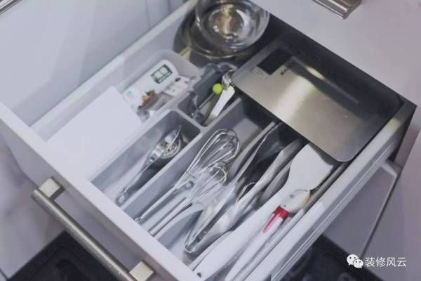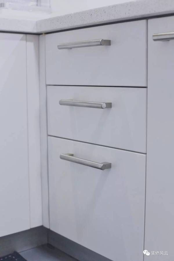 抽屉下柜下柜的秘诀就是:抽屉抽屉抽屉。搁板式的下柜,非常不方便,拿个东西,都要蹲下去找半天,天天把下柜全都做成抽屉式了,方便省事儿,而且收纳的空间也变大了~