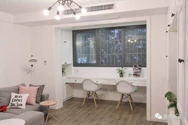 本来想把阳台做成飘窗,偶尔喝个下午茶,不过,问过了很多朋友,都说自己的飘窗都沦为了放置杂物的地方。于是天天把这块儿地方设计成了自己的「书房」,两边做成高柜,书也有地方放了~