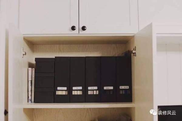 上方的封闭空间,天天选择的是宜家的黑色的收纳盒(记得分类贴标签喔)。