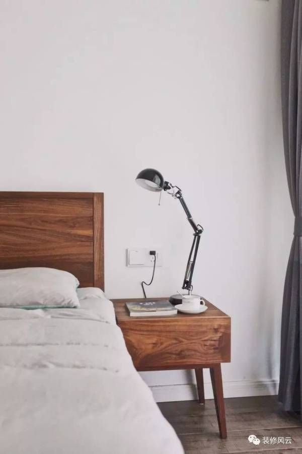 床和床头柜都是胡桃木的,跟自己家所有的木质家具都是统一的风格。