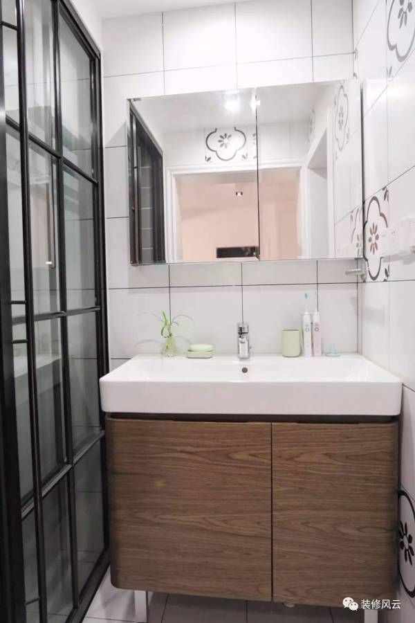 干湿分离的卫生间,用门把多个空间都隔离开来,不用担心卫生间的湿气令橱柜受潮。