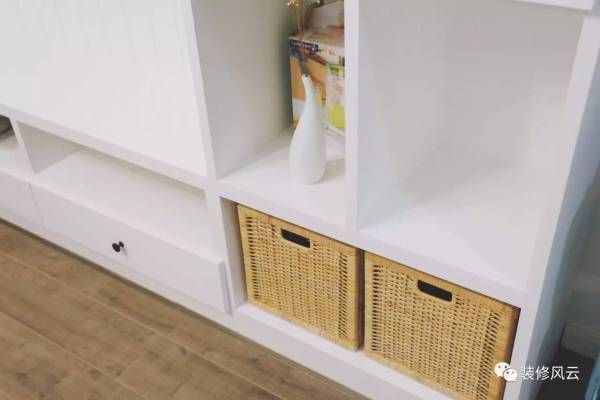 外观造型方面要虚实结合。天天把柜子的中间和下方的区域做成了开口式,开阔的空间可以消除厚重感和压迫感。