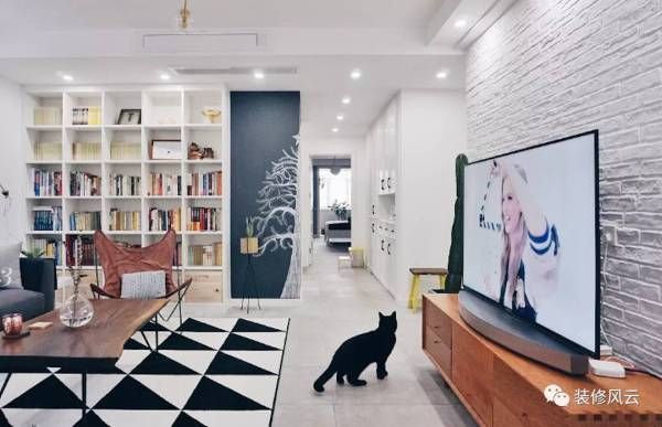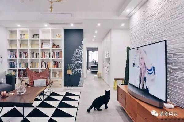 这个角度能看清风管机吊顶和电视墙顶部石膏板的处理,除此之外,全屋没有吊顶。