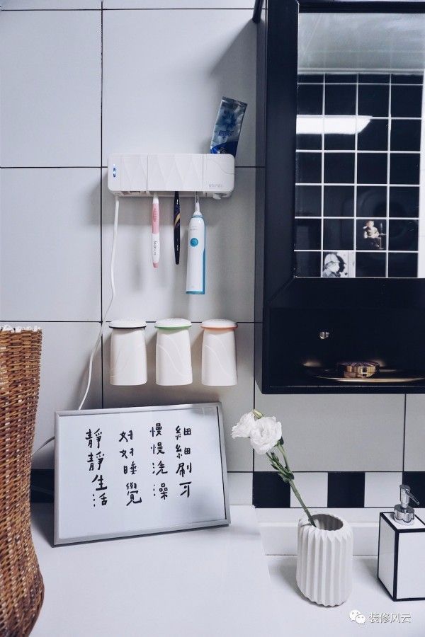 红外线牙刷消毒器可以给牙刷消毒,避免潮湿的卫生间使牙刷滋生细菌,倒挂的磁力漱口杯也能保证口杯的卫生。