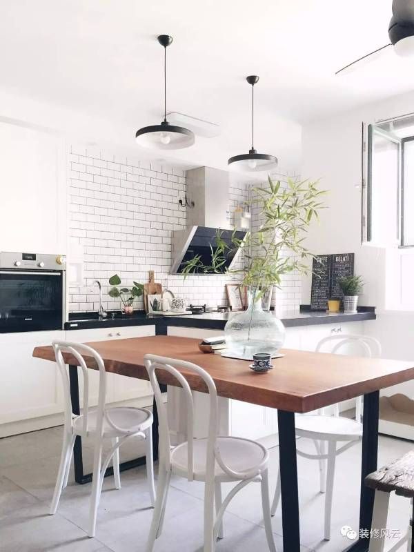 原来的厨房和餐厅之间有一堵墙,厨房也就是封闭的、窄窄的一个小条。拆掉非承重墙之后,整个厨房和餐厅连为一体,整个空间都显得宽敞明亮了。