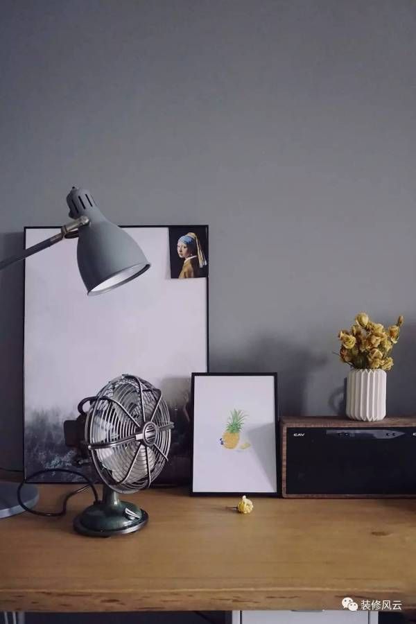 书桌细节,复古电风扇,自带香薰格,可以把精油倒进去,吹出来的风有淡淡香味。