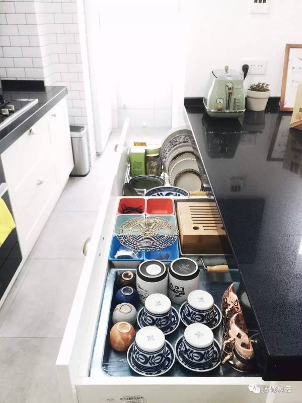 一个乱糟糟的厨房,还是开放式的,看起来不闹心么?有了岛台,把岛台的下方做成抽屉,开放式厨房的收纳难题也迎刃而解。