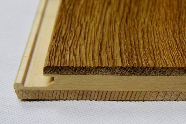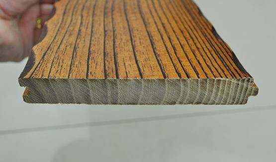 要鉴别实木复合地板的表层是不是真的实木,方法也是观察地板的横截面,也能发现纹路是正面的延续。