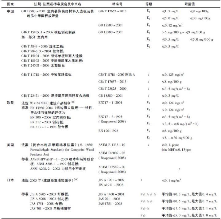 (图片来源:《中国与欧盟、美国、日本人造板甲醛标准比较》,《世界林业研究》第28卷第2期)