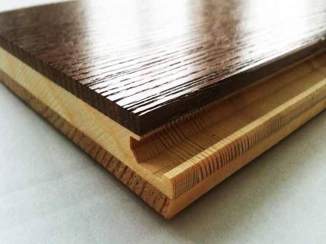 表层常用质地坚硬、纹理美观的优质木种,芯层和底层常用松木、杨木等软杂木,层板横竖交错放置、互相牵制,比实木地板稳定性好。