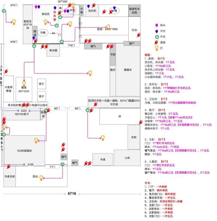 - 熟悉人体工程学尺度,能比我们“多想一点”。他不会默认你的卧室只有一盏灯,他会告诉你应该有几盏灯,是吊灯还是射灯,吊灯吊多低,射灯距离墙多远,各自有什么用途,灯的开关在哪里……问问你们的设计师,考虑电动窗帘了吗?考虑猫眼充电了吗?考虑智能声控感应开关了吗?考虑家里网络日后升级了吗?等等
