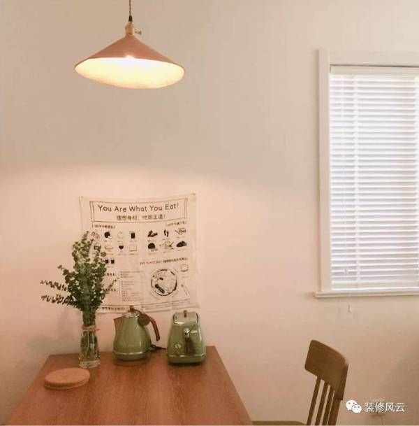 白色或者原木色的百叶窗适合momo家这种比较明亮的装修风格。如果是房间是深色基调,最好使用深色系的百叶窗。