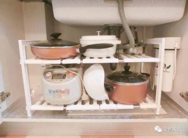 刚住进来几天,大熊就把锅到处乱放,水槽下面还有空间,于是网购了一个小置物架,放在水槽下方,置物架的高度和长短都可以自己调节。
