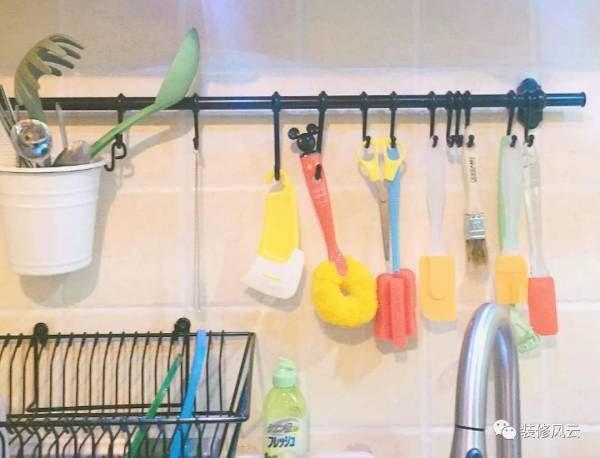 网购的宜家小挂钩,把一切能挂起来的,都挂起来,不要让凌乱的厨房用具占据宝贵的台面操作空间了。