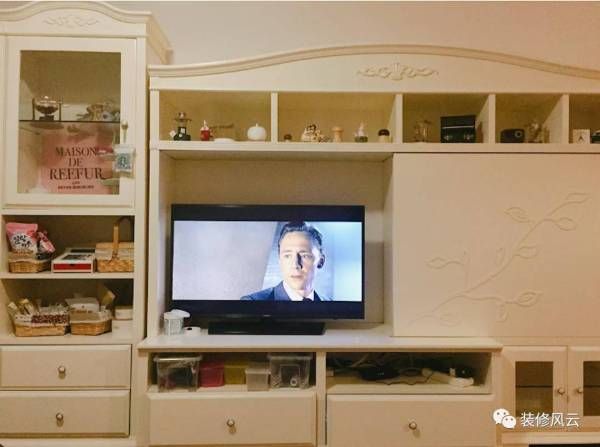 客厅面积较小,还是家庭的重心,很需要收纳的空间,于是选了这款有些公主气息的电视柜。电视的区域,是可以推拉的,可以把电视挡起来。