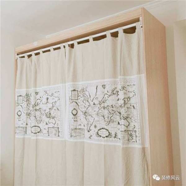 谁说衣柜一定要用厚重的衣柜门呢?酷爱帘子的momo给自己的衣柜门装了帘子,帘子上的画也是世界地图。