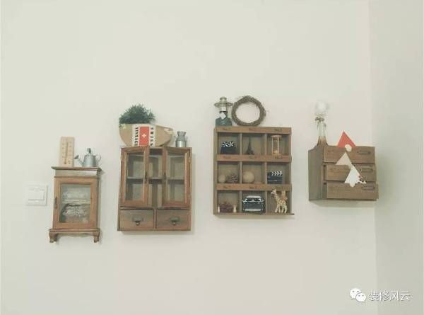餐厅也是需要收纳空间的,网购了一堆的实木小柜子,还是使用无痕钉,钉在墙壁上,不用担心会掉下来的。