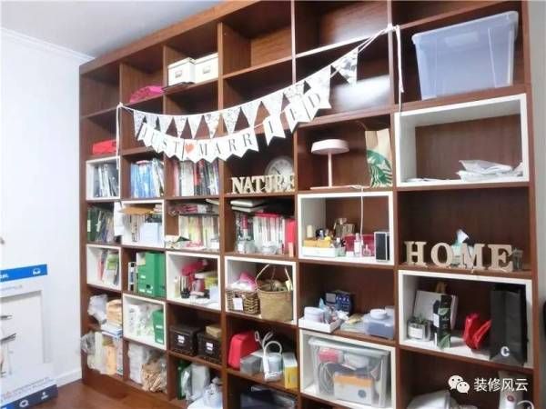 喜欢看书的momo,做了一个超大的书架,目前书还没摆满,放了一些其他的杂物,看起来有一点儿凌乱。