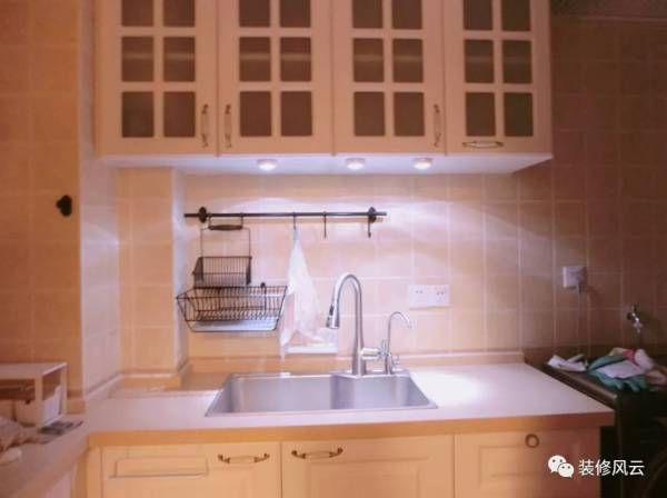 安装橱柜的时候,忘记了预留柜底灯的插座,于是就用3M胶,粘上几个宜家的小夜灯。