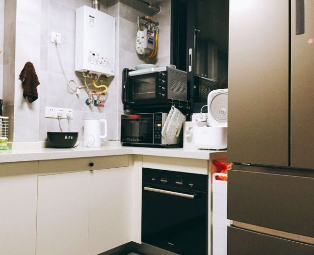 ▲找不到浴室柜里带小厨宝的图了,用橱柜带小厨宝的图凑合一下。提醒浴室柜底下的空间通常比较小,有的可能放不下小厨宝。