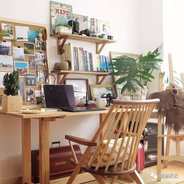 既然是书房,一个大书桌必不可少,书桌上还配备了搁板和软木墙,除了在客厅里面放照片,软木墙上也可以用回形针+小钉子放上更多的照片。