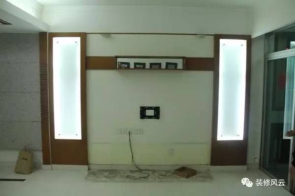 原来的电视墙,繁复杂乱,两边的灯箱,什么鬼,辣眼睛!果断拆拆拆。