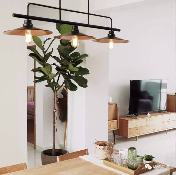 黑色吊灯跟厨房的黑色门框和客厅的黑色沙发互相对应,整体的风格都很统一喔~
