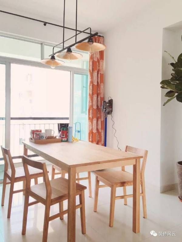 扔掉了原来的餐桌餐椅,选择了风格统一的原木餐桌,以及配套的餐椅。家具的风格统一非常重要,不然从视觉上就有杂乱不堪的感觉,大绵家的木质家具,都是原木,然后自己刷木蜡油,整个房间都显得很清新。