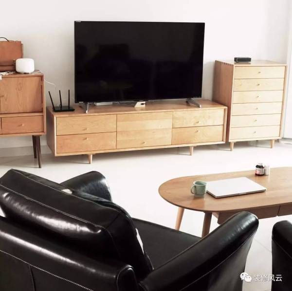 一个简单的白墙,加上木质的电视柜,就是最好的搭配了。