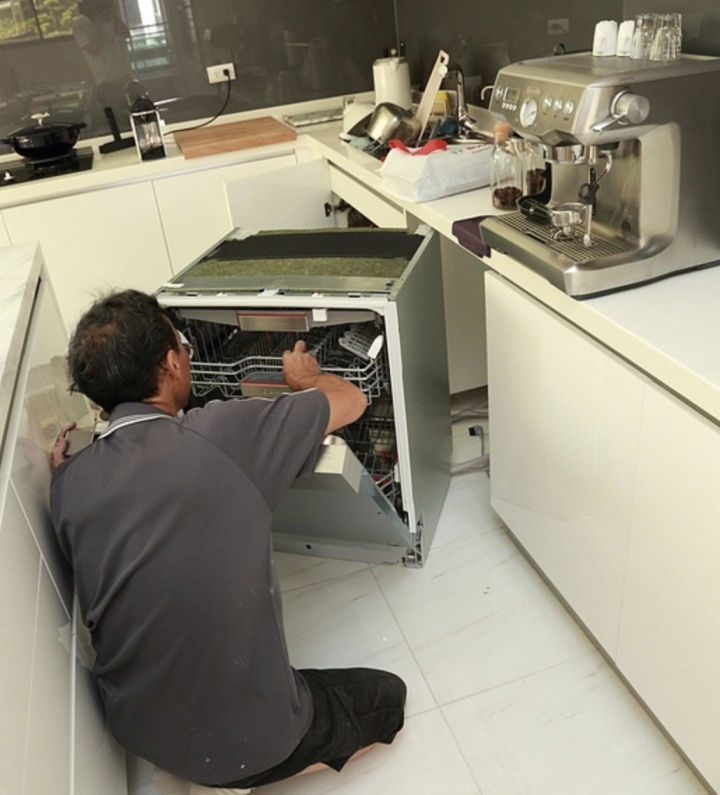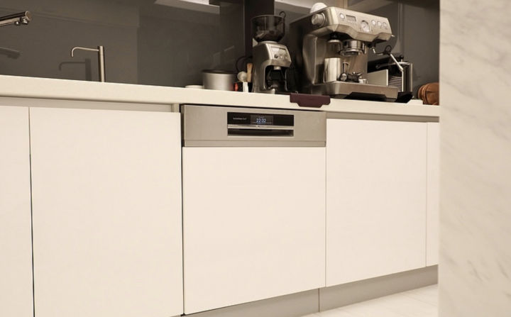 有的洗碗机属于半嵌入式,自身不带门板,要利用橱柜的门板,最好安装橱柜当天也约洗碗机一起安装,保证洗碗机和橱柜门板完美对接。