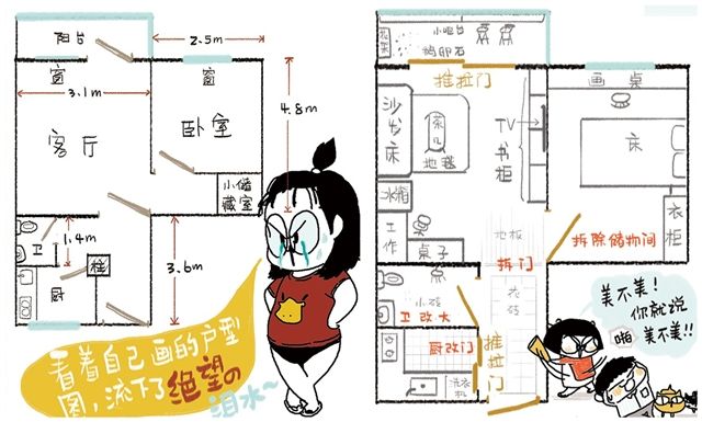 PP用自己的画笔,记下了装修过程的各种心得、小窍门,也有碎碎念,已经出版成书,连青山周平都对她细节化的经验大加赞赏,说有些问题他们设计师都没想到过。