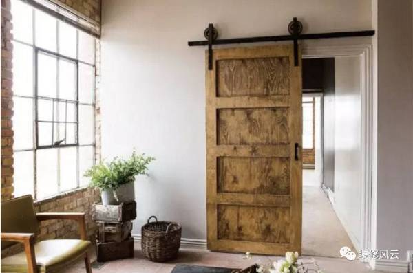 原先是用在农场谷仓的一种门,本质上是上轨推拉门的一种。谷仓门有一种质朴、怀旧、酷酷的感觉,很适合工业风、美式复古等风格。好看,但是并不隔音喔~