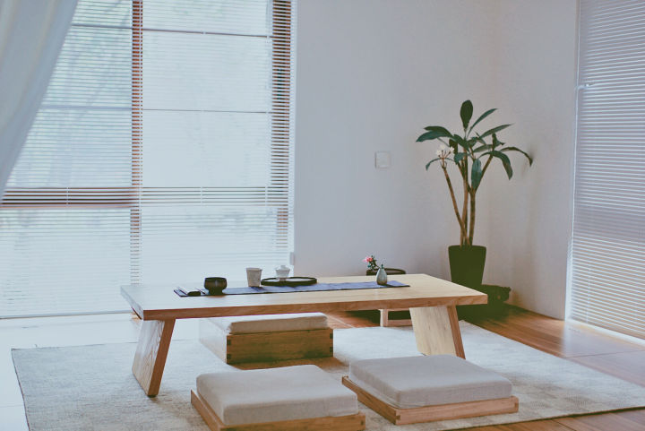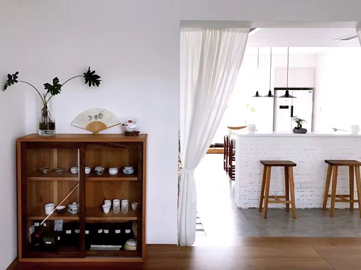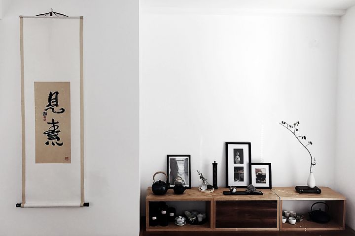 次卧敲掉大部分隔墙,成为开放的茶室,因为有的朋友喜欢盘腿坐,房间内全都做了榻榻米。