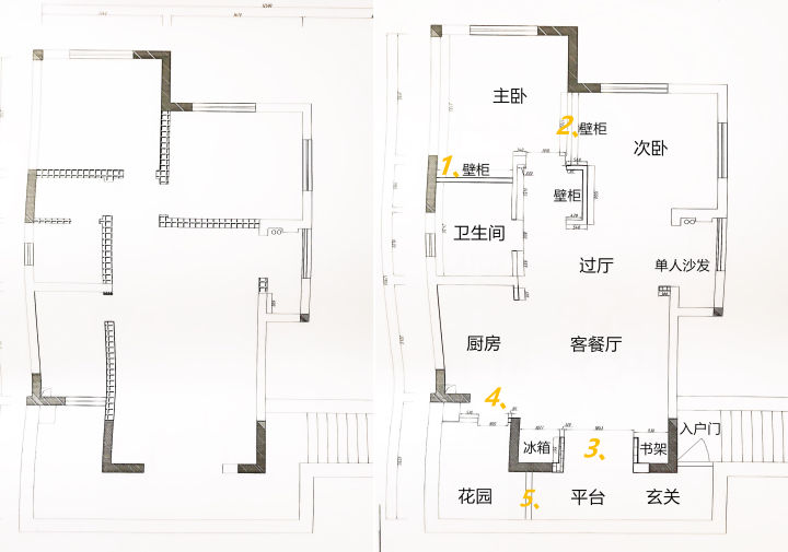 根据自己的生活习惯,对家里的隔墙敲敲挪挪,房子格局优化不少。