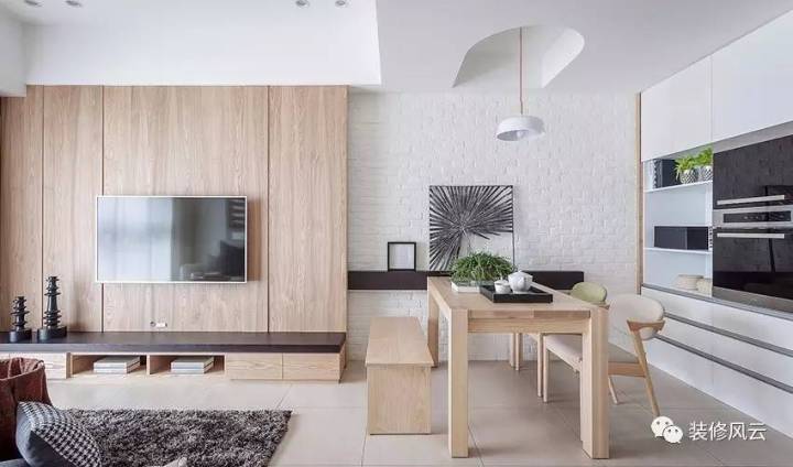32 现代风甚至把砖用于客厅背景墙造型,大块砖可以仿木、仿石,小块砖则是妥妥的文化感。
