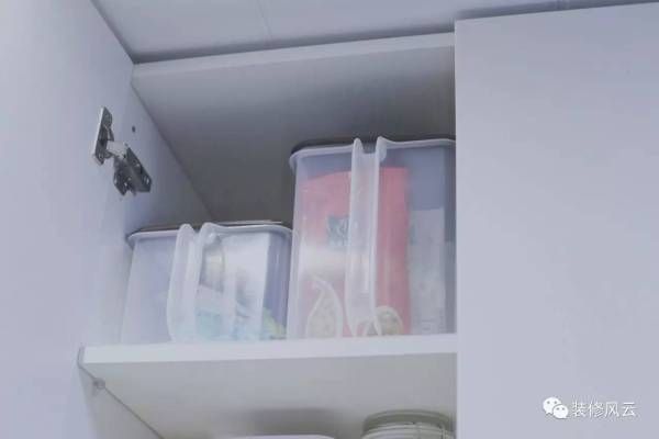 ▲天天的上柜是平开式的,开关都非常方便,还放上了带把手的收纳盒