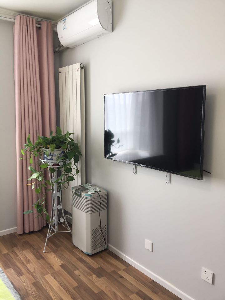 也安装了新风系统,红墙上两个圆圆的白孔就是新风回风口。缺憾是管道有声音(类似呜呜的风声),夜晚安静时比较明显,幸好两人的睡眠质量还不错。