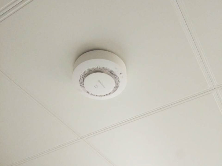 吊顶上安装烟雾报警器,一旦检测到失火引起的浓烟,立刻通知多功能网关和手机APP响铃报警。