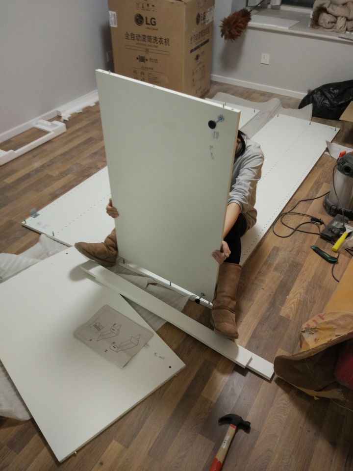 床和床头柜还好,衣柜实在是太巨大了,各种2米多高的大板子,举起来太费劲……