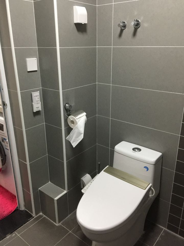 湿区马桶上方留了电热水器的接水管,却还没投入使用……关于生活热水,思铭的设计是: