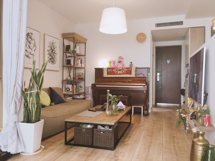 Blue选择了开放式书架、细腿茶几、没有扶手的矮沙发,家具小,反而显得客厅大,可见小空间宜用尺寸较小、形态轻盈的家具。