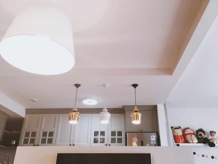 Blue家虽然不大,但光源很多。单说这客厅,就有主吊灯,有各种各样的装饰灯,还巧借了厨房吧台上方的三只吊灯。