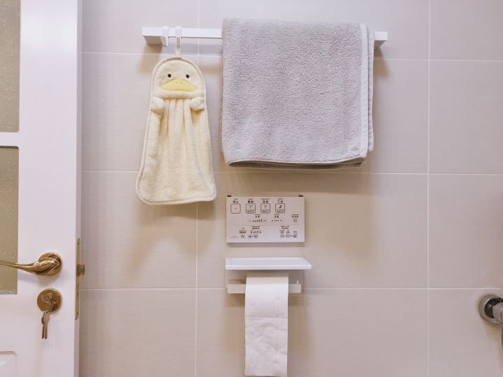 智能马桶盖的控制面板、卷纸架都设置在马桶对面的墙上,伸手就够得到,不用回头扭身,非常方便。
