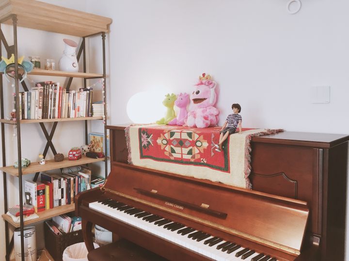 钢琴上面那只圆圆的灯,Blue说它像个月亮。