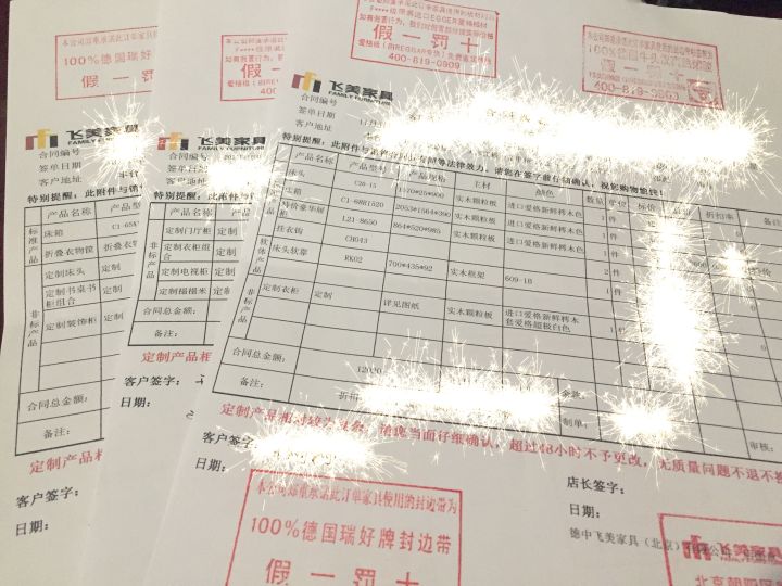 像飞美给我的合同里,都注明了板材为F4星级的原装进口爱格板,假一罚十。